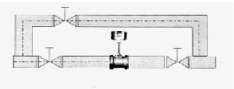 4)如需斷流檢查與清洗傳感器,應設置旁通管道,如下圖所示。