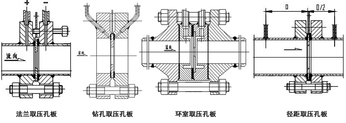 屬標(biāo)準(zhǔn)孔板。它不論管道直徑大小,其上、下游取壓孔中心均位于距孔板兩側(cè)端面各式各1時(shí)(25.5mm)處,煉油系統(tǒng)普遍采用此種形式。