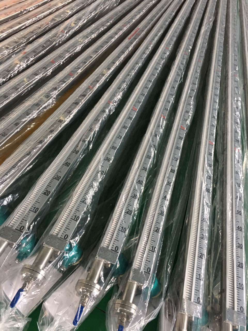 3、.液位計進入運行前,應先打開上法蘭氣相閥,然后緩慢打開下法蘭液相閥,使介質緩慢的流入筒體讓翻柱(板)逐一跟蹤指示,并用調節螺釘調整好零液位。